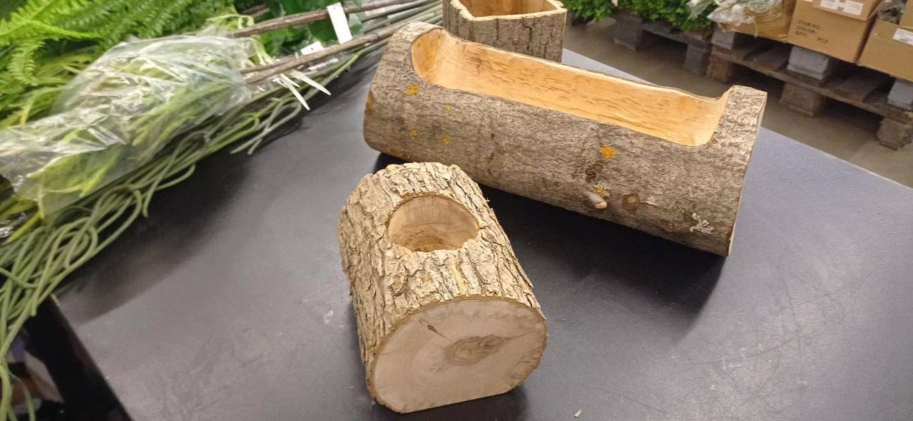 Кашпо из коры липы. Подходит для горшечных растений, срезки, сухоцветов и искусственных цветов. Размеры: Высота- 120мм Диаметр 100мм Глубина 100мм Размеры и формы, могут быть разными. Дно из влагостойкой фанеры. Все стыки и крепление на оцинкованных скобах.