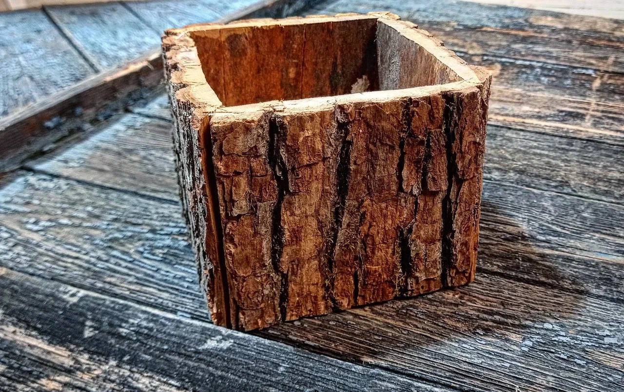 Кашпо из коры липы